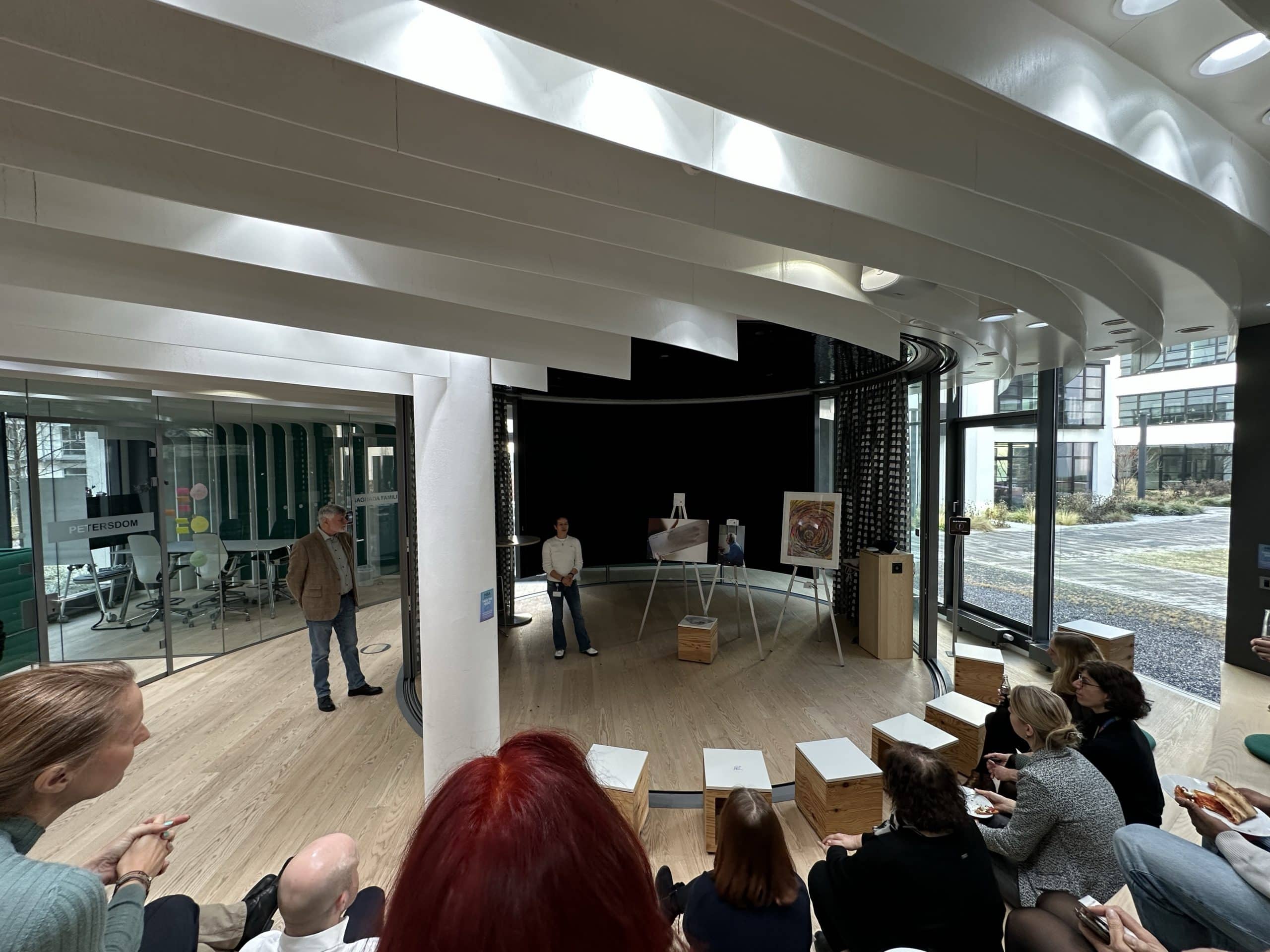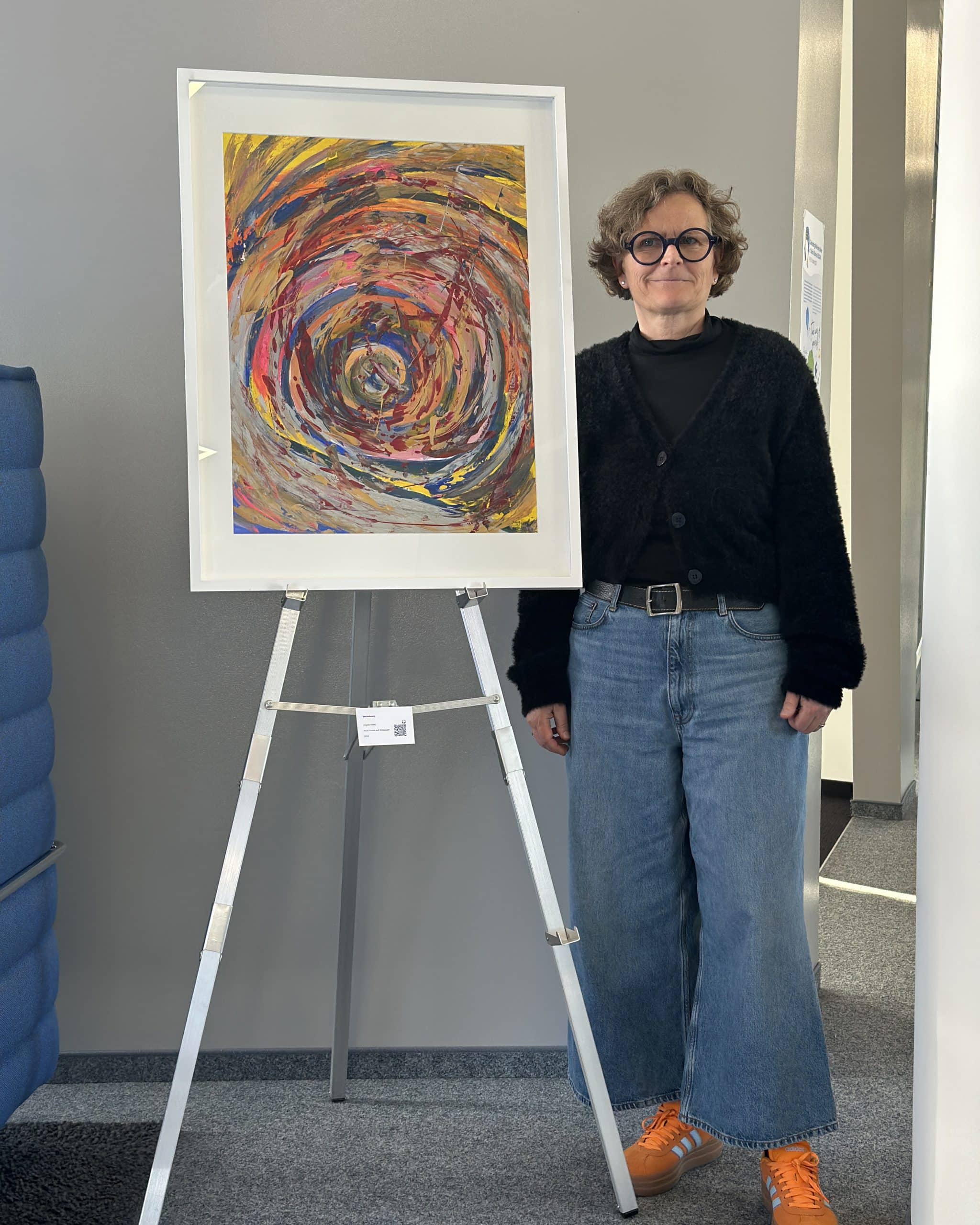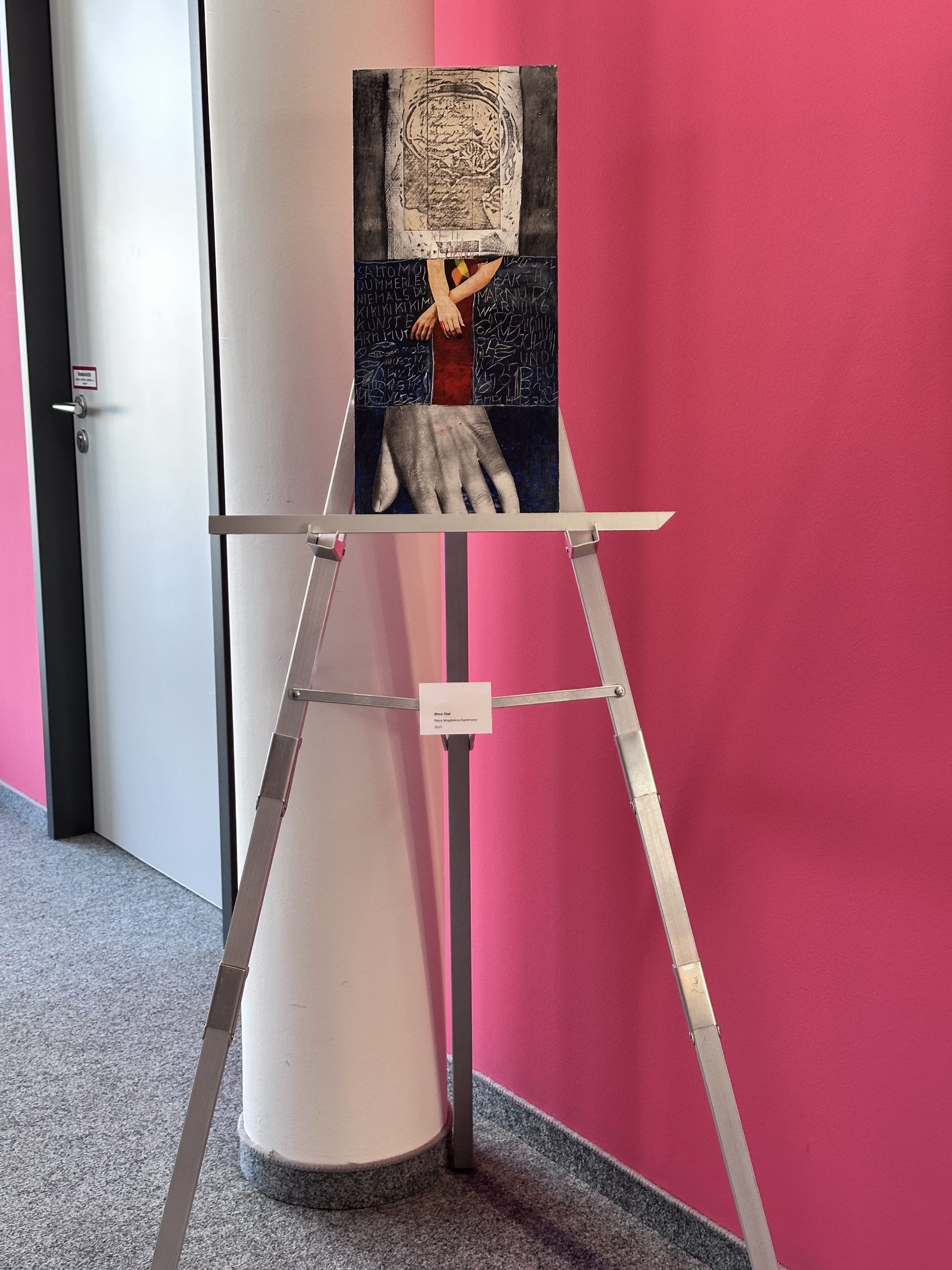 Am 22. Januar 2026 durften wir bei dem Pharmakonzern, der uns dankens-werterweise mit einer großzügigen Geldspende unterstützt, einen Teil unserer Exponate zeigen. Zur Vernissage waren Mitarbeiter*innen des Hauses geladen, die mit großem Interresse den Worten mehrerer Künstler lauschten. Und sich die Beweggründe hinter den Exponaten erklären ließen.